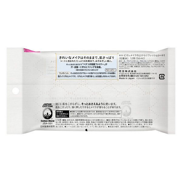 | 商品名 | Biore(ビオレ)メイクの上からリフレッシュシート 無香料 携帯用 12枚 |