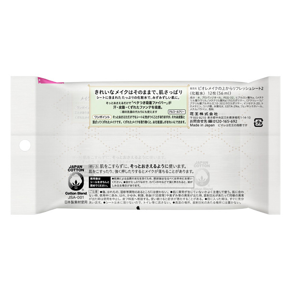 きれいなメイクはそのままで、肌さっぱり。大判ウェットタイプのシートに含まれたたっぷりの化粧水で、みずみずしい肌に。そっとおさえるだけで、「ベタつき吸着ファイバー」が汗・皮脂・くずれたフファンデを吸着。朝の洗顔の代わりにも使えます。無香料。アルコールフリー。