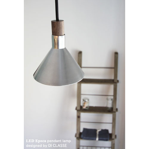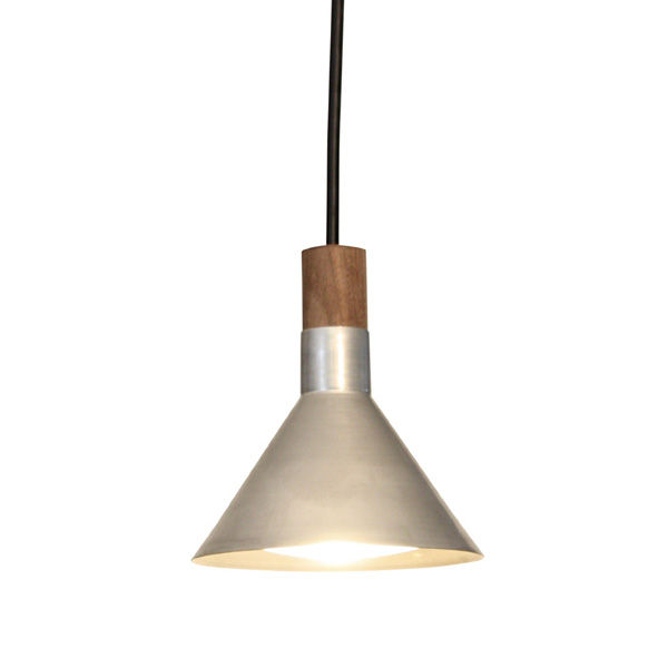 ウォルナット×金属 異素材の組み合わせがアクセントになるライト。すっきりとした清潔感漂うシルバー。シェードの素材は、アルミとウォルナット。