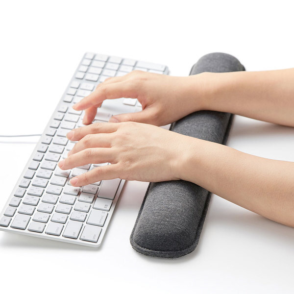 手首や腕、肩の疲れを軽減するソフトなクッション入りのリストレスト。ロングサイズ・ダークグレー。