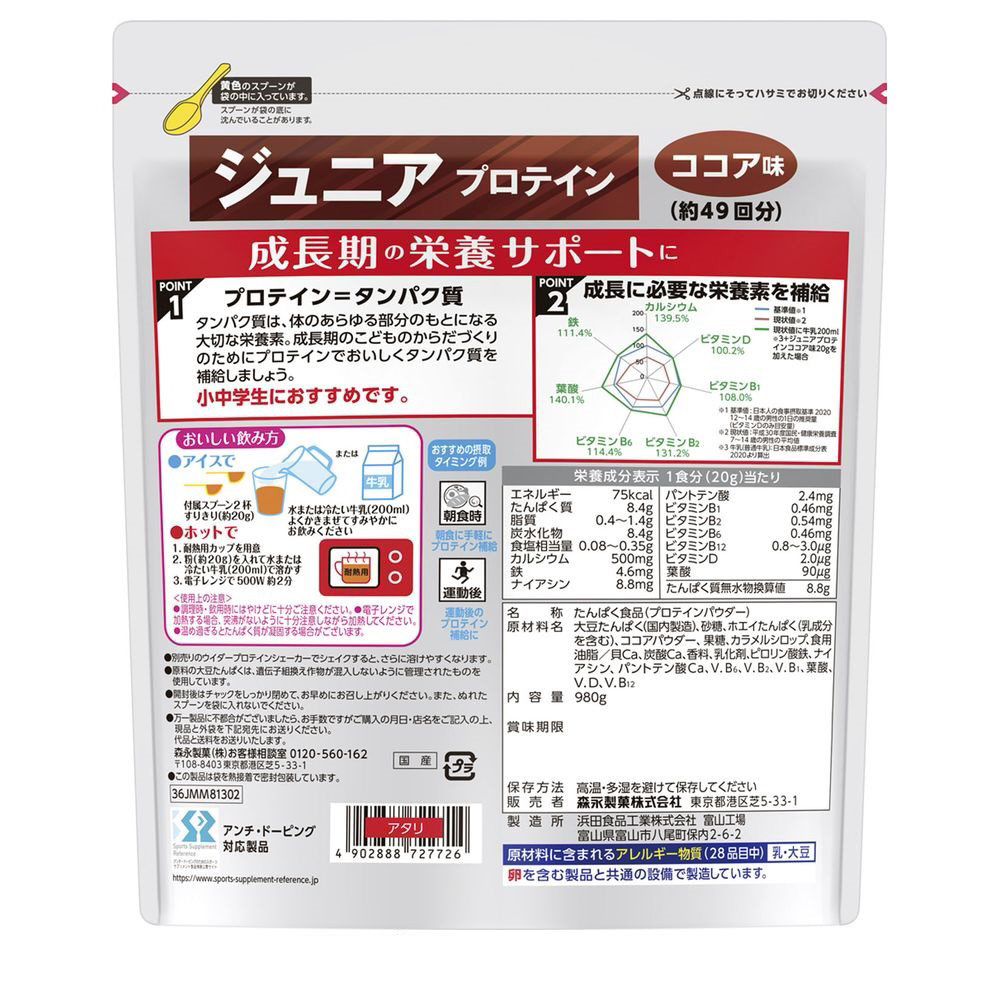 ウィダー ホエイ&ソイプロテイン ジュニアプロテイン【ココア風味/980g・49回分】 【パッケージデザインの変更等による返品・交換不可】