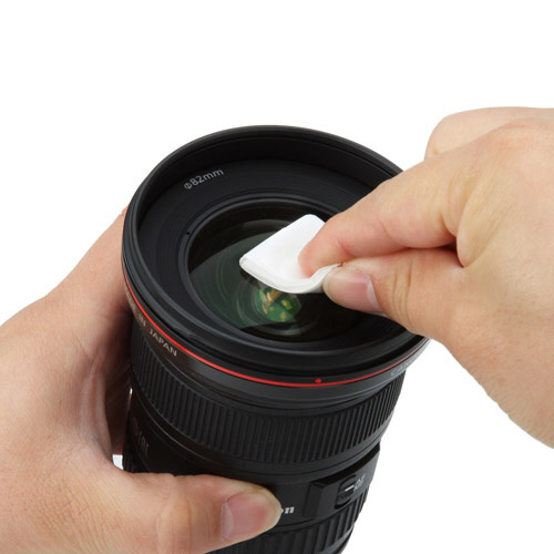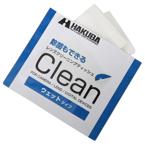 クリーニングリキッドで湿らせたパルプ100%の柔らかい素材で、傷付きやすいレンズ等への使用も安心です。レンズ面を清掃する場合は、クリーニング面の中心から外側に向けて円を描くように軽く拭くことで、拭き残りなくクリアに仕上がります。