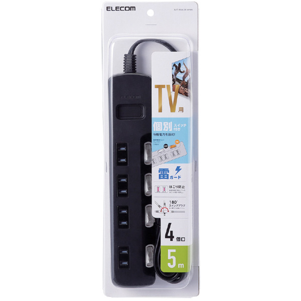 商品名 AV雷ガードタップ 個別スイッチ ホコリシャッター付 4個口 5m AVT-K6A-2450BK [5m]