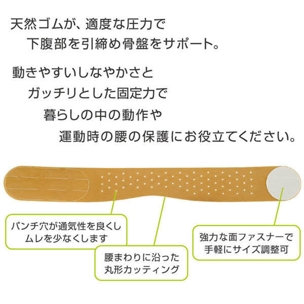 天然ゴムが、適度な圧力で下腹部を引締めて骨盤をサポートする抗菌タイプの骨盤ベルトです。