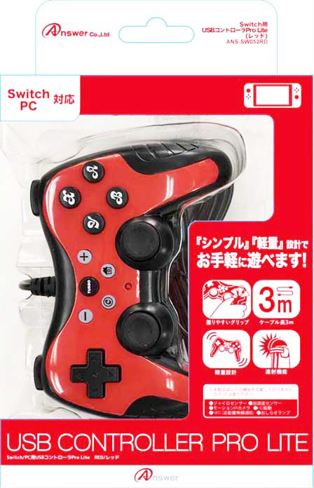 Switch用 USBコントローラPro Lite ネオンレッド [ANS-SW052RD]