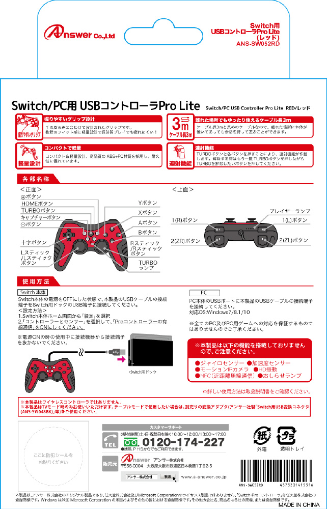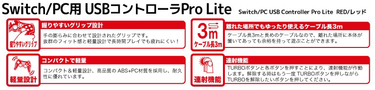 | 商品名 | Switch用 USBコントローラPro Lite ネオンレッド [ANS-SW052RD] |