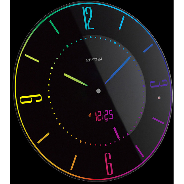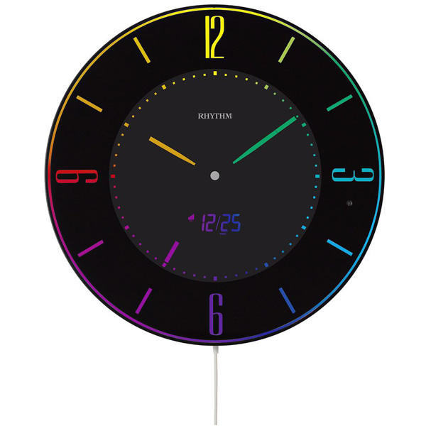 七色に変化するグラデーションモード、まるで夜景を見ているように癒しを与えてくれる薄型電波掛時計