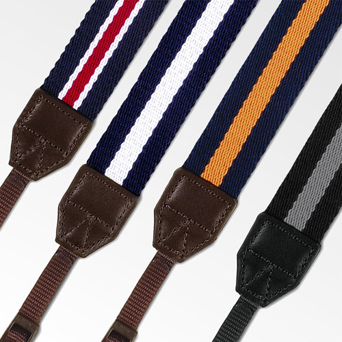 柔軟でファッショナブルなストライプ柄のストラップ。一眼レフにもミラーレスにもマッチする30mm幅のストラップです。