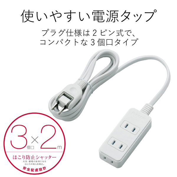 | 商品名 | ほこり防止シャッタータップ 3個口 2m T-TST02-22320WH 【852】 |