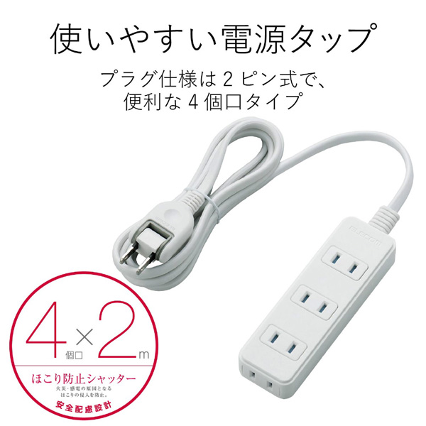 | 商品名 | ほこり防止シャッタータップ 4個口 2m T-TST02-22420WH |