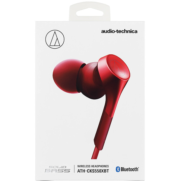 【在庫限り】 SOLID BASS ATH-CKS550XBT RD レッド【リモコン・マイク対応】【重低音モデル】 ブルートゥースイヤホン カナル型