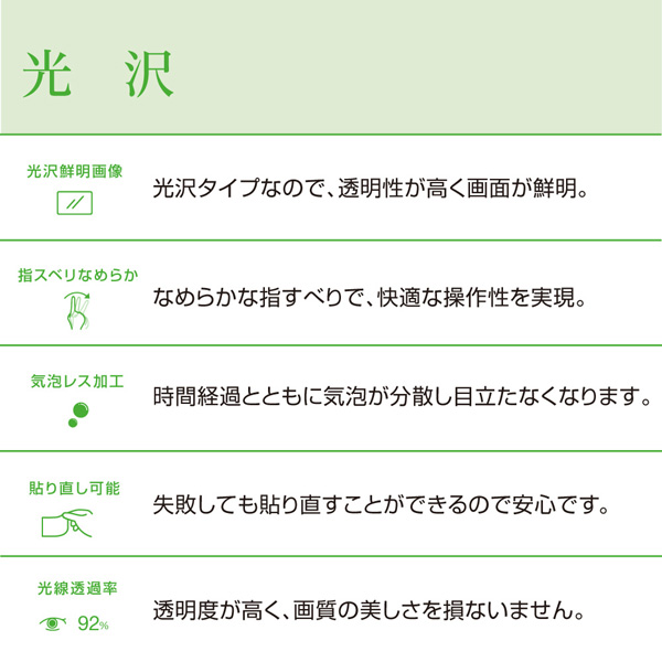 高い透明性で画像や動画の鮮明さを損なわない高光沢仕様