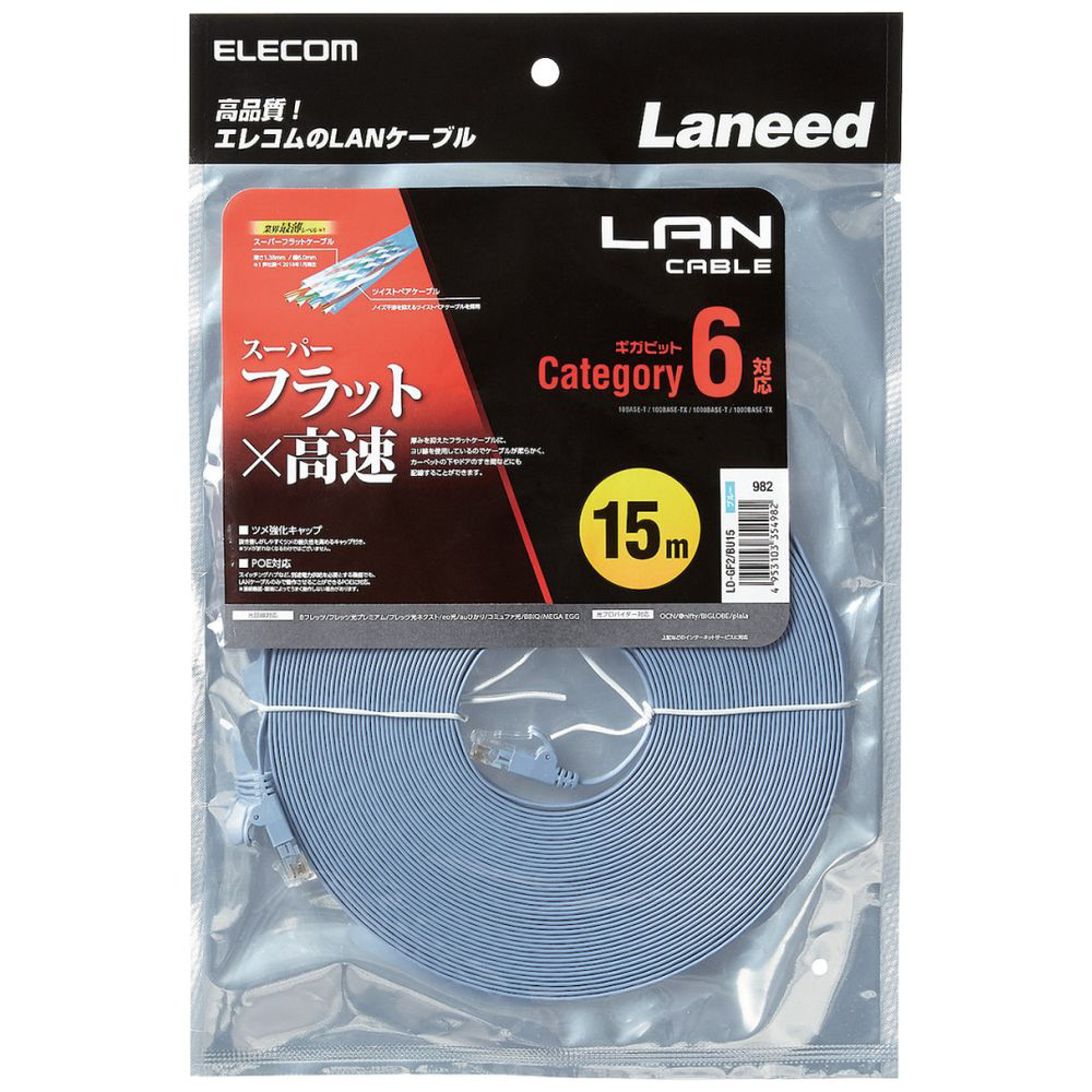 | 商品名 | LANケーブル/CAT6/フラット/15m/ブルー LD-GF2/BU15 |
