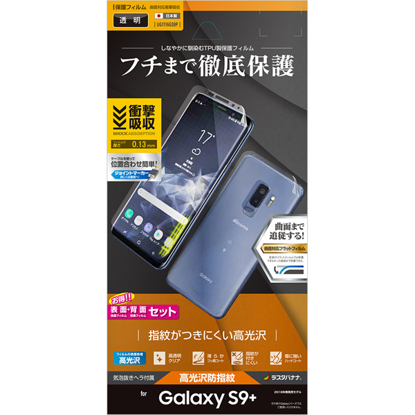 | 商品名 | Galaxy S9+ 薄型TPU光沢防指紋フィルム 両面セット UG1116GS9P |