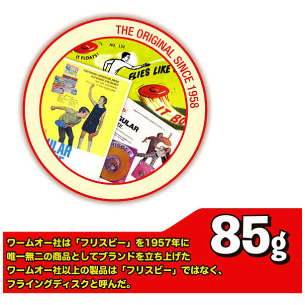 航空力学に基づいたデザインで驚きの飛距離!と安定飛行!ゴルフボール状のパターンが、安定飛行と性能を向上させ、精密成形のリムで最大飛行時間を可能に!1959年に「フリスビー」を唯一無二の商品としてブランドを立ち上げた、ワームオー社のフリスビーです。
