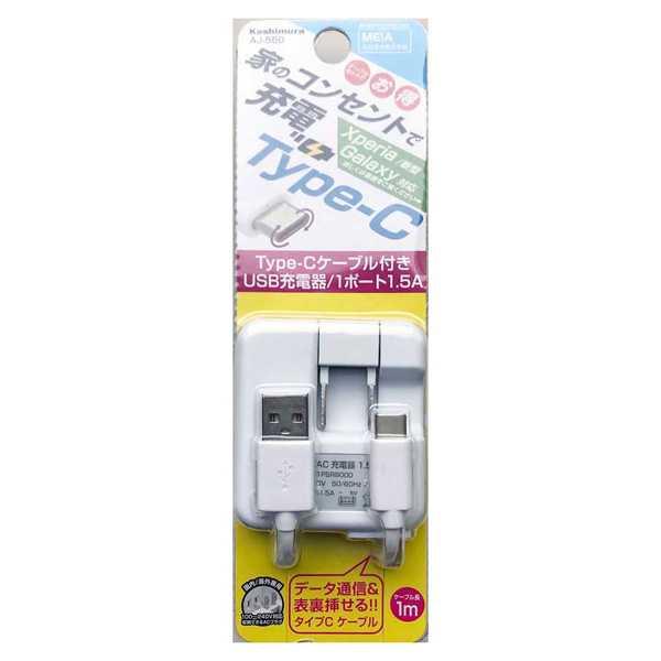 AC充電器 1.5A Type-C 1m WH AJ-550