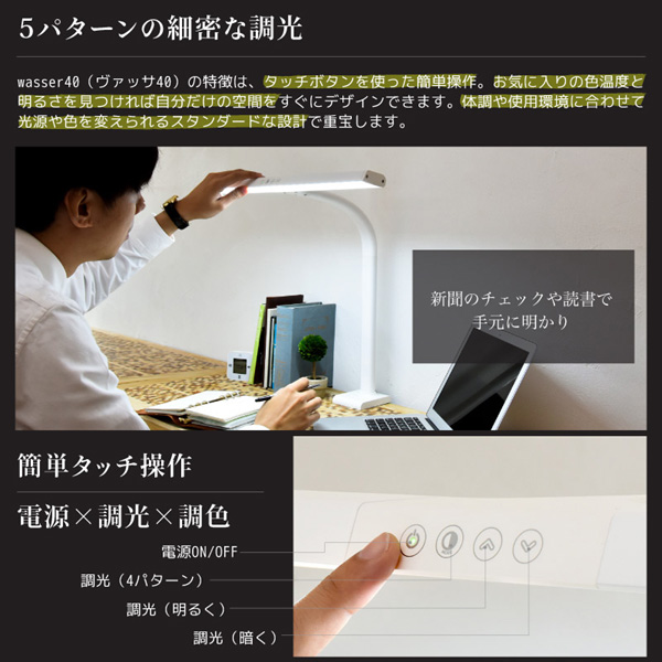 | 調色機能 | 昼光色-白色-昼白色-電球色の4パターンの調色 |