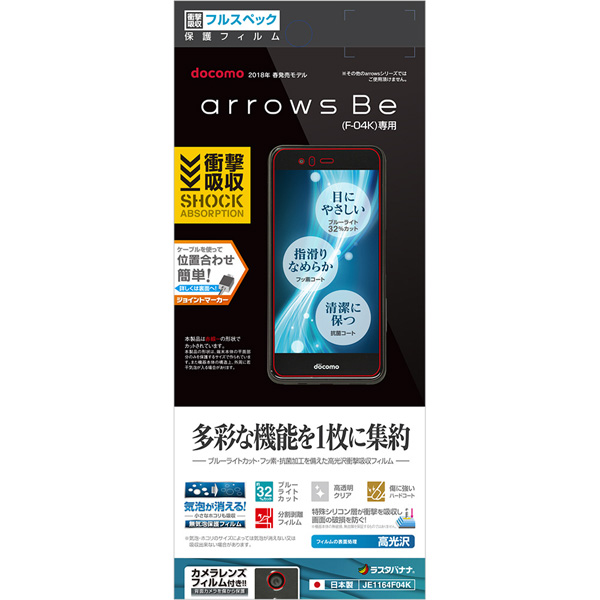 | 商品名 | arrows Be F-04K 衝撃吸収フルスペック高光沢フィルム JE1164F04K |