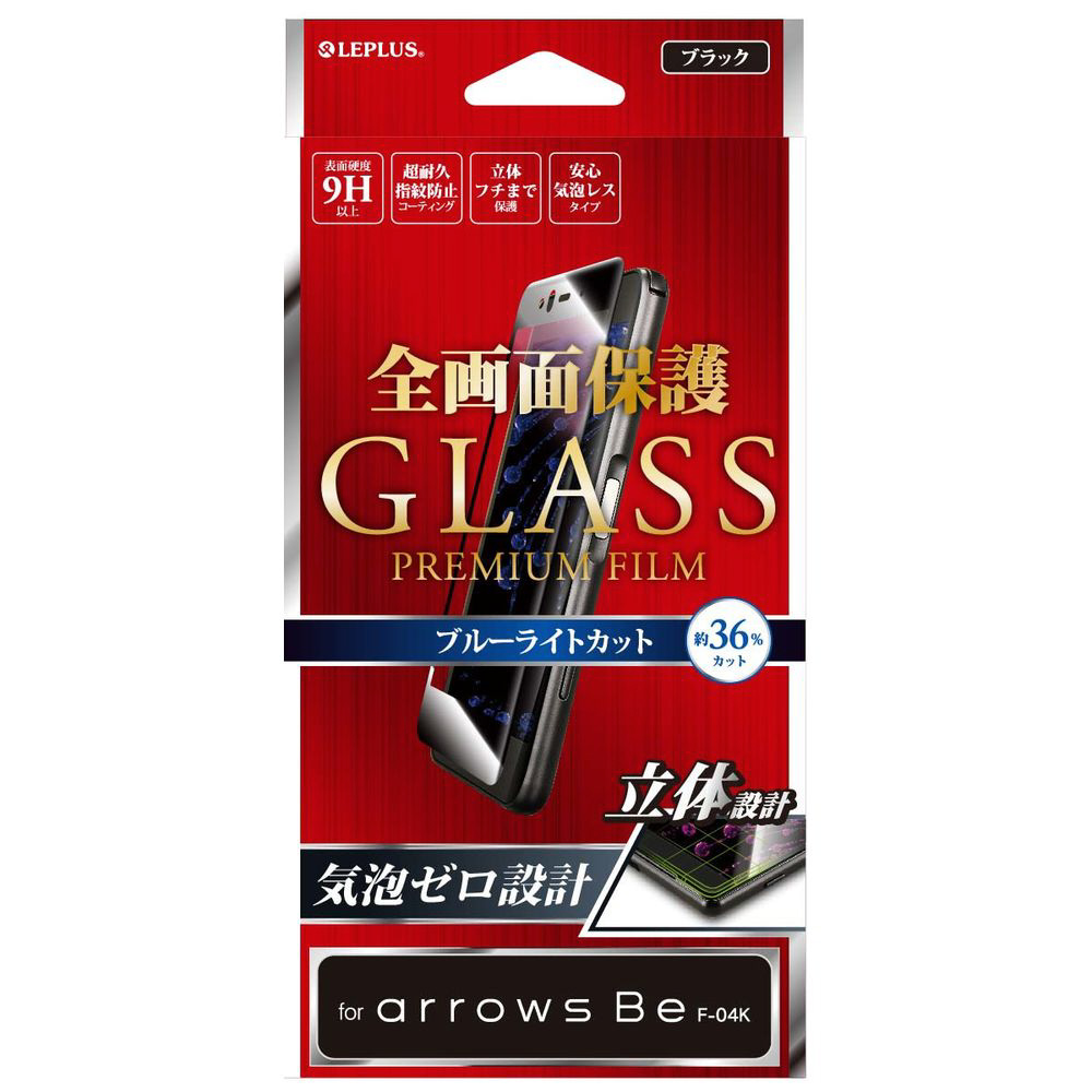 商品名 arrows Be F-04K用 ガラスフィルム 「GLASS PREMIUM FILM」 全画面保護 ブラック/高光沢/ブルーライトカット/0.20mm ブラック LEPLUS LP-ARMFGFBBK