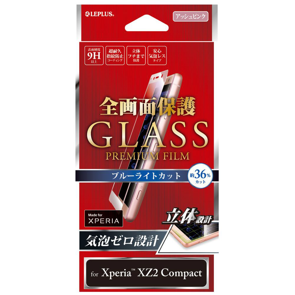 Xperia XZ2 Compact用 ガラスフィルム 「GLASS PREMIUM FILM」 全画面保護 高光沢/ブルーライトカット/0.20mm LP-XPXC2FGFBPK ピンク