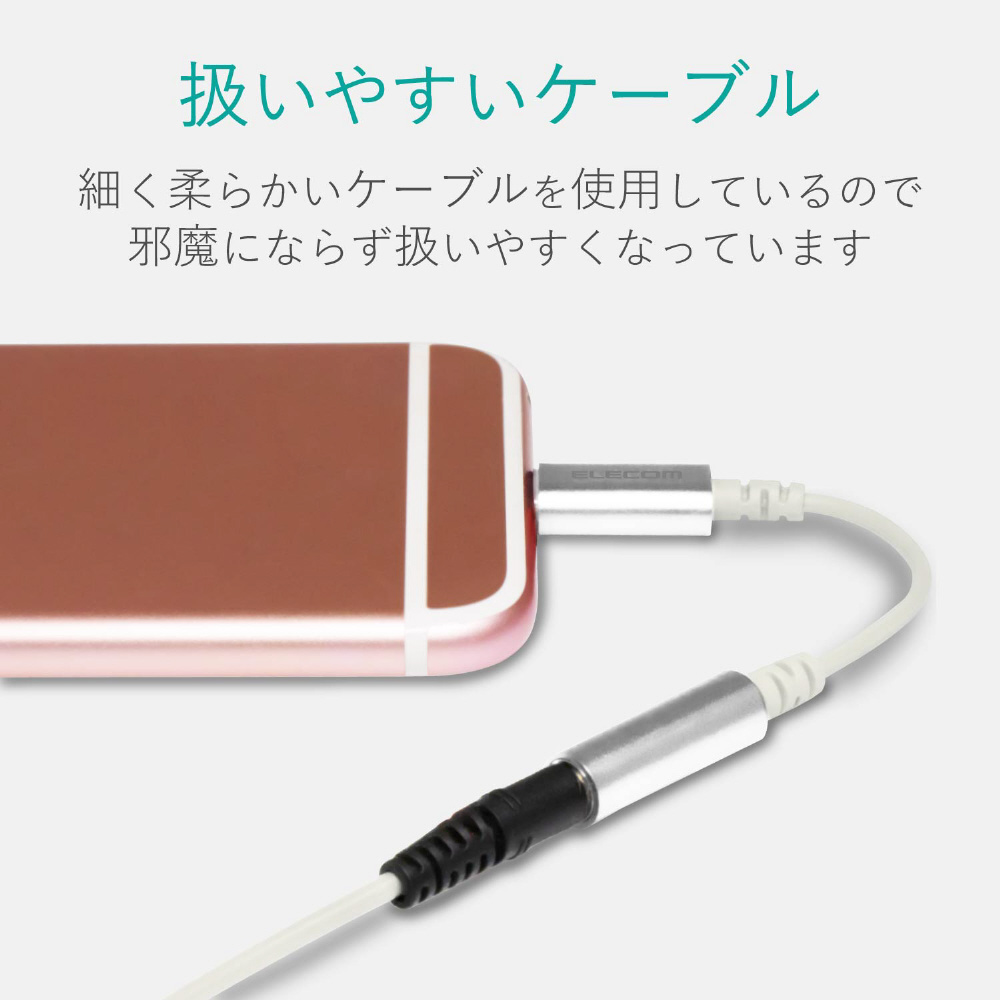 Lightningコネクタをφ3.5mmイヤホンジャックに変換できる変換ケーブルです。