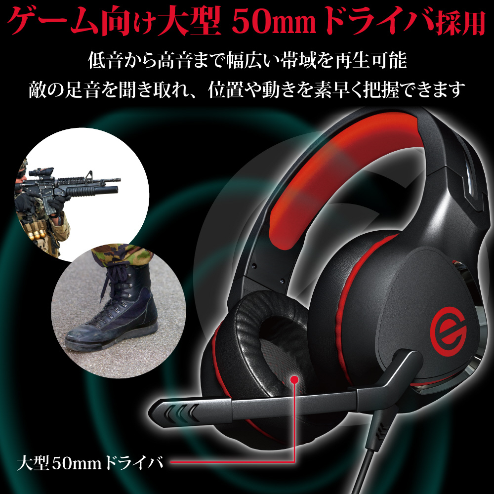 ガンシューティング系ゲームでの使用に適した大型50mmドライバ搭載のゲーミングヘッドセットです。