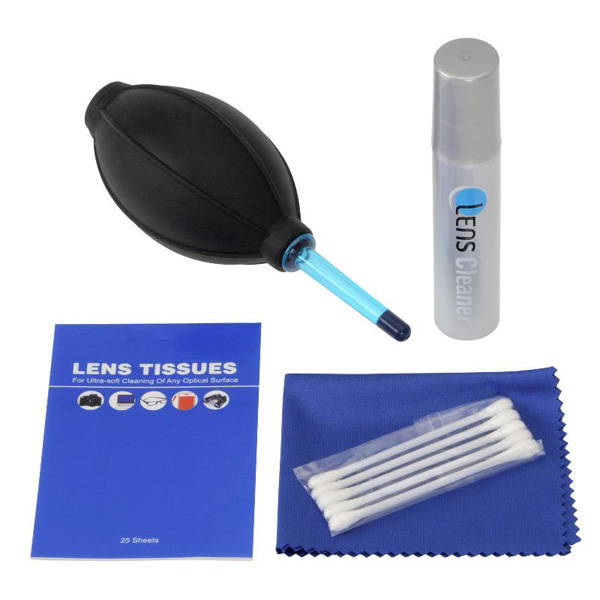 ゴミやホコリを吹き飛ばすブロアー、繰り返し洗って使える小極細繊維のクリーニングクロス、指紋や皮脂汚れをしっかり除去するレンズクリーナーとクリーニングペーパー、細部の清掃に便利な綿棒がワンパックに