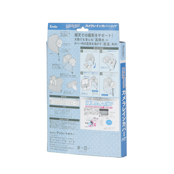 高撥水・透湿素材の高性能生地「ブリザテック」を主生地に採用した、カメラレインカバー「カメラレインカバー HT」です。