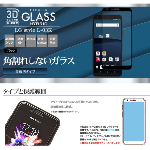 【在庫限り】 LG style L-03K 3Dガラスパネル ソフトフレーム光沢 BK ブラック SG1269L03K