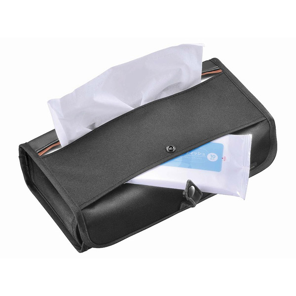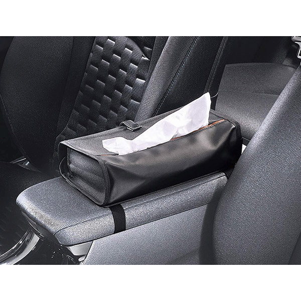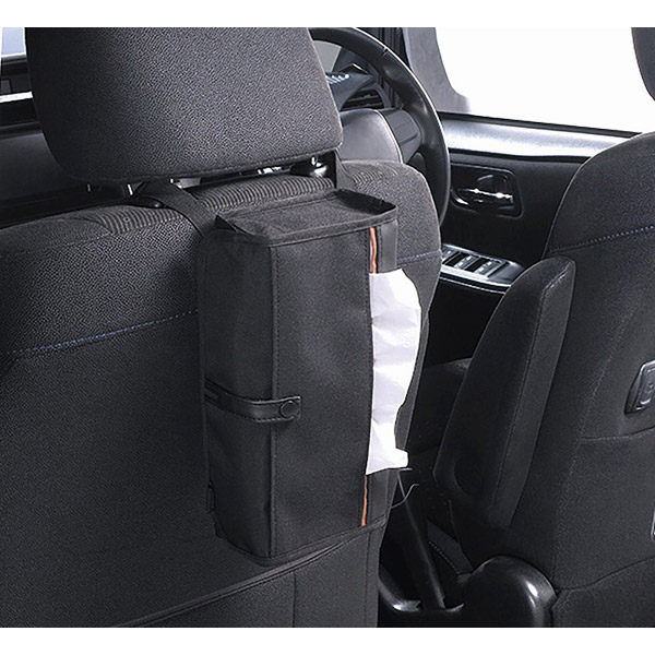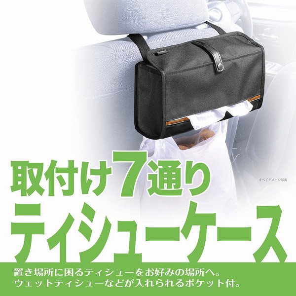 ■ヘッドレスト、シートバック、バイザー、アームレスト等いろんな場所・パターンで取付けできるティシューケース。