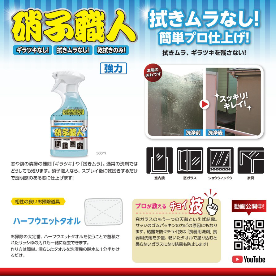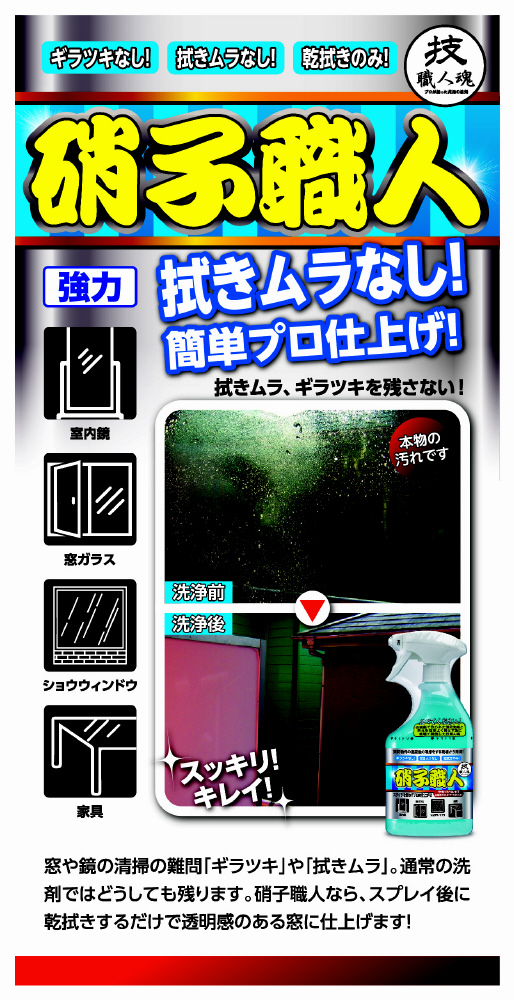 拭きムラ、ギラツキなし!スクイジいらずの硝子用!