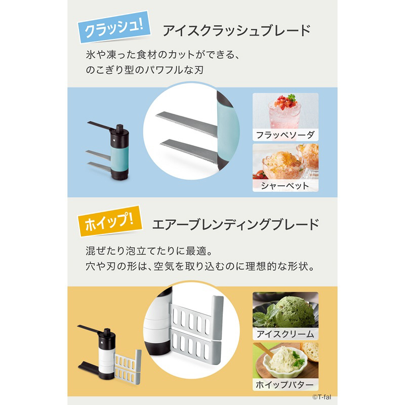 | アタッチメント | チョッパーブレード(赤色)、アイスクラッシュブレード(水色)、エアーブレンディングブレード(白) |