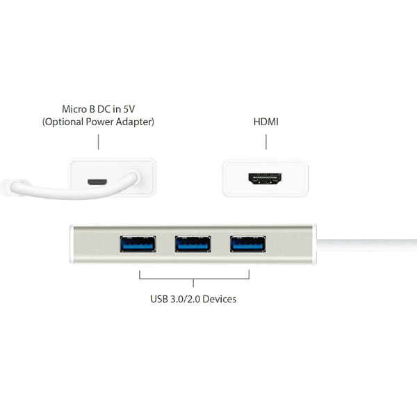 HDMIディスプレイアダプターにUSB3.1ポートを3つ搭載