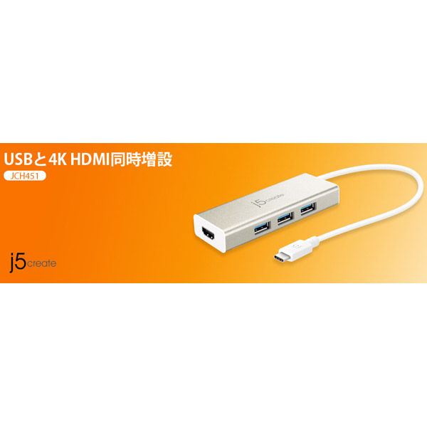 | 商品名 | JCH451 Type-C HDMIアダプター+USBマルチハブ |