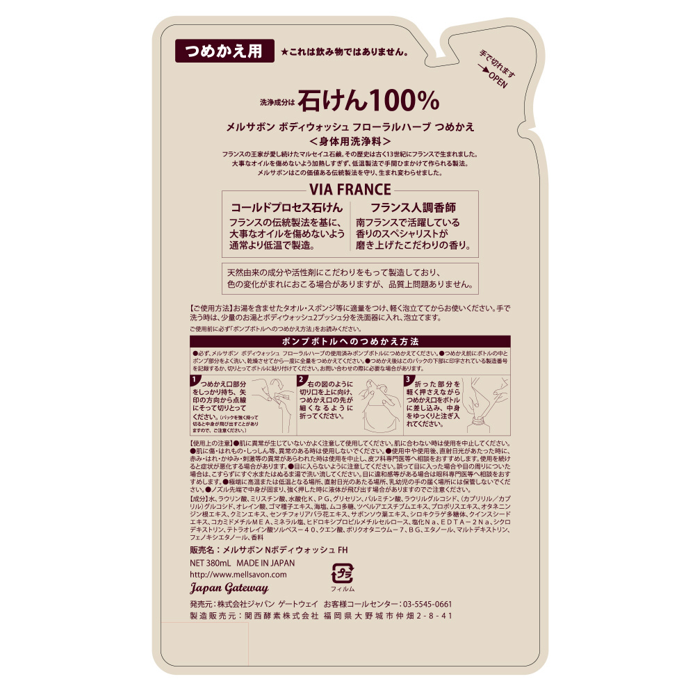 | 商品名 | メルサボン ボディウォッシュフローラルハーブ替 |