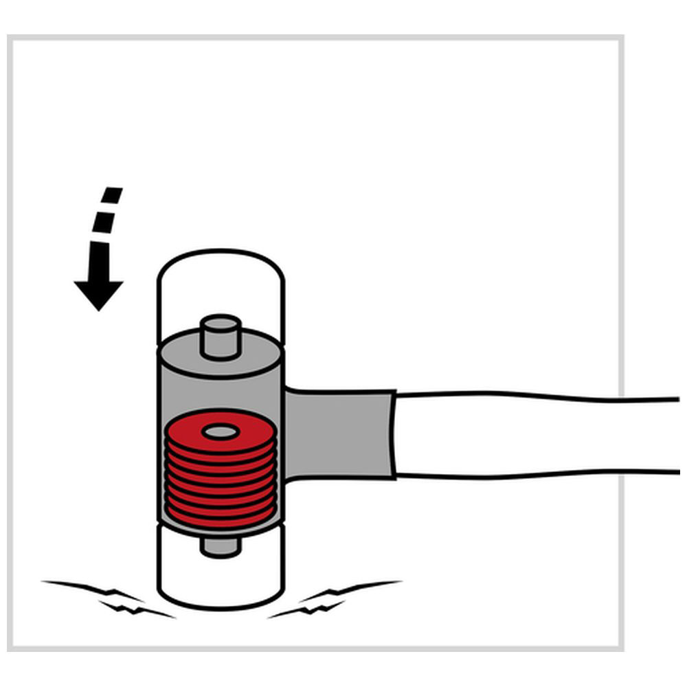 内部にディスクが内蔵されたヘッドは、インパクトの瞬間にディスクが打撃面方向へ移動することで反動を打ち消し、打撃力だけを伝えます。