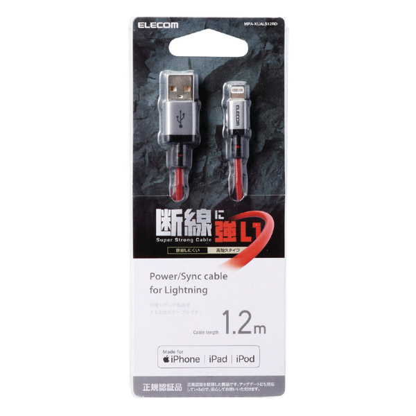 | 商品名 | Lightningケーブル 高耐久 1.2m レッド MPA-XUALS12RD |