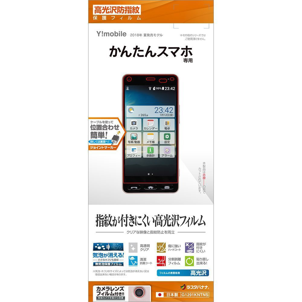 | 商品名 | かんたんスマホ 光沢防指紋フィルム G1291KNTNS |