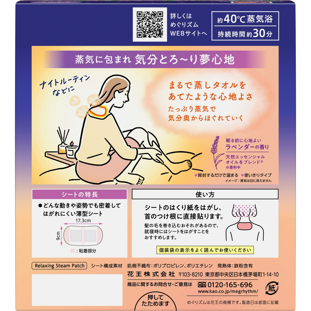 | 商品名 | めぐりズム 蒸気でグッドナイト 首もと あったかシート ラベンダの香り 12枚 |