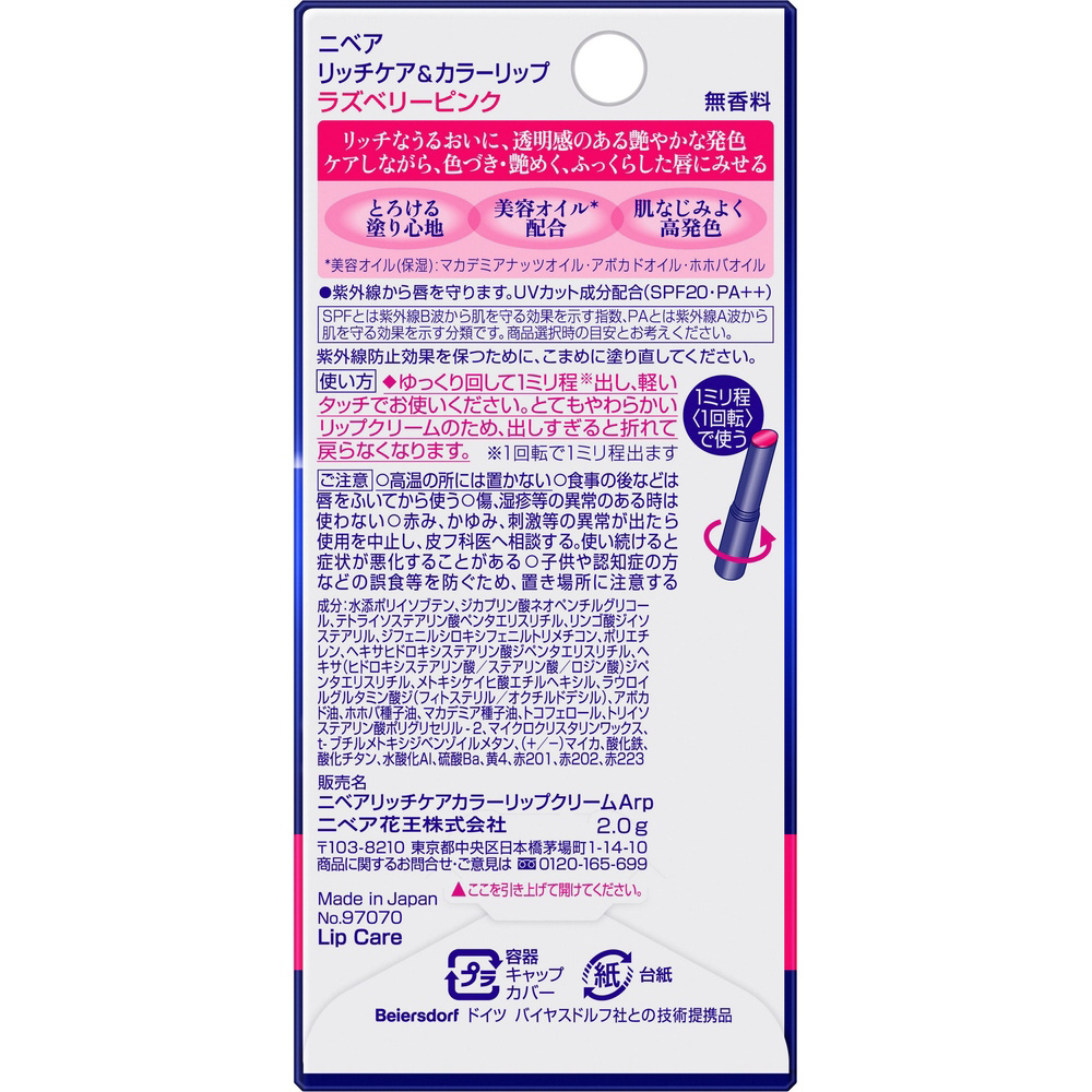 | 商品名 | NIVEA(ニベア)リッチケア&カラーリップ ラズベリーピンク 2g |