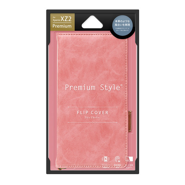 | 商品名 | XperiaXZ2 Premium用 フリップカバー PUレザーダメージ加工シリーズ ダスティピンク PG-XZ2PFP03PK |