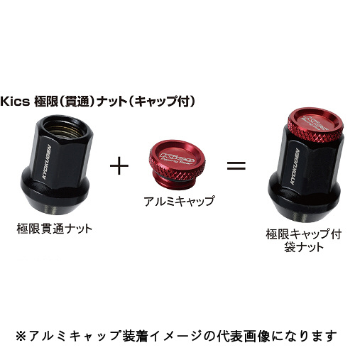 ■極限貫通ナット(全長25mm)にアルミキャップを装着した「キャップ付き袋ナット」です。極限ナット本体とアルミキャップの組み合わせとなります。