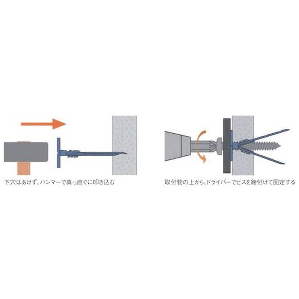 ・石膏ボード(JIS: GB-R)9〜12.5mm厚、ベニア(ラワン合板)4〜5.5mm厚の壁面母材への器具取り付けに。