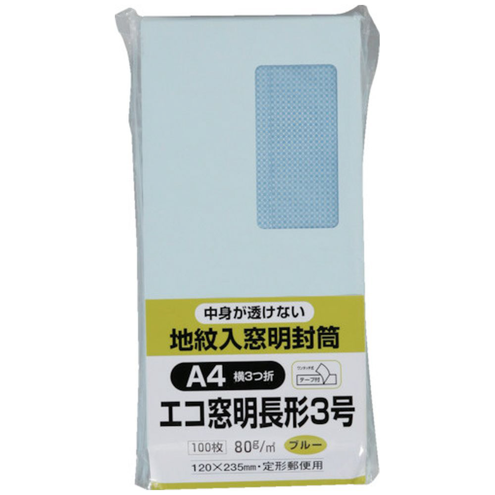 | 商品名 | キングコーポ エコ窓地紋ソフト100 長3 80g ブルー テープ付 N3MJS80BQ |