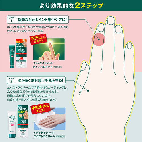 3つの有効成分が指先などのヒビ・あかぎれを防ぐ薬用ポイント集中ケアハンドクリーム。(医薬部外品)