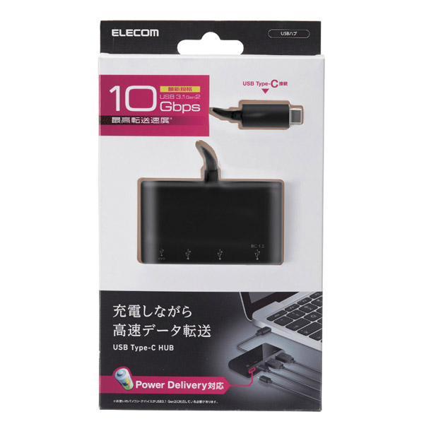USBHUB3.1/Gen2/PD対応/Type-C/ブラック U3HC-A424P10BK 【sof001】