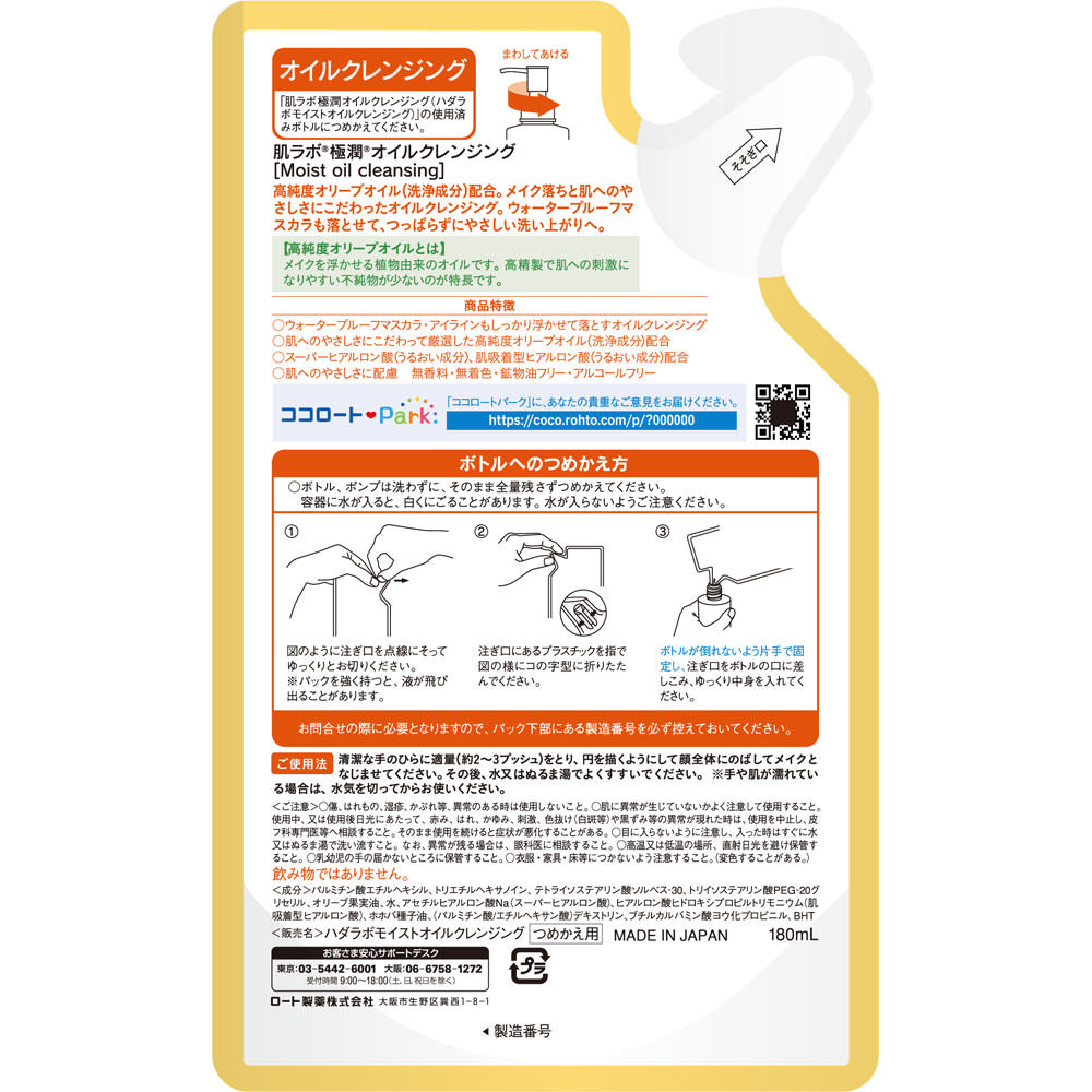 | 商品名 | 肌研(肌ラボ) 極潤 オイルクレンジング つめかえ用 180ml |