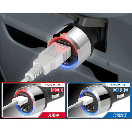 車載用充電器 EXEA(エクセア) インジケーター搭載 モニターUSBポート USB合計最大4.8A