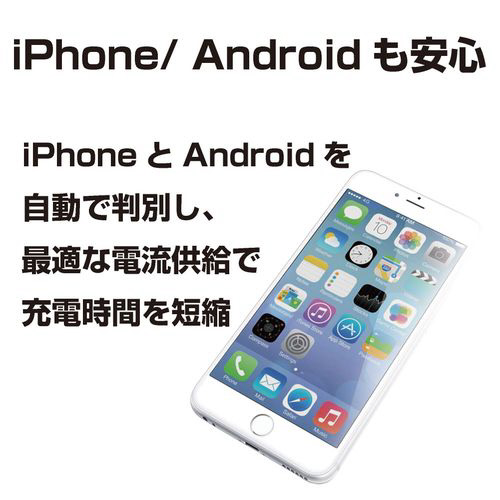 ■USBポートは接続した機種を自動で判別し機種に合った電流で最適充電を行う自動判別機能を採用しています。各ポートで独立した制御を行いますので、異なる機種を同時に挿してもそれぞれ最適な充電を行えます。