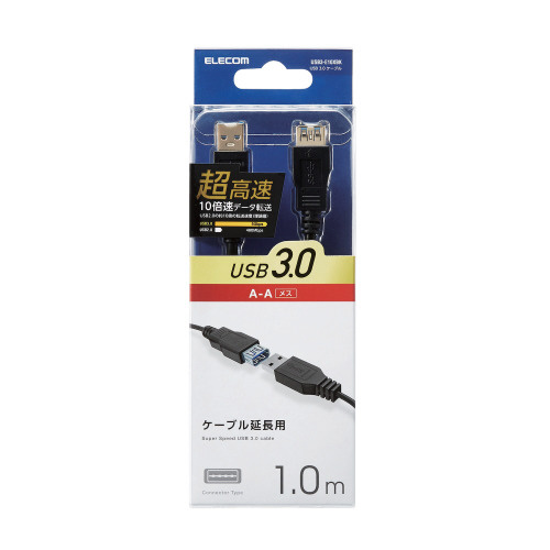 USB3.0ケーブル/A-A延長タイプ/スタンダード/1m/ブラック USB3-E10XBK